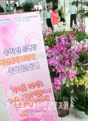 송기진 광주 은행장, 모란장 축하화분 공매·기부 '눈길'