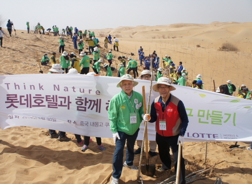 롯데호텔, 中 내몽고 '쿠부치사막' 나무심기 캠페인