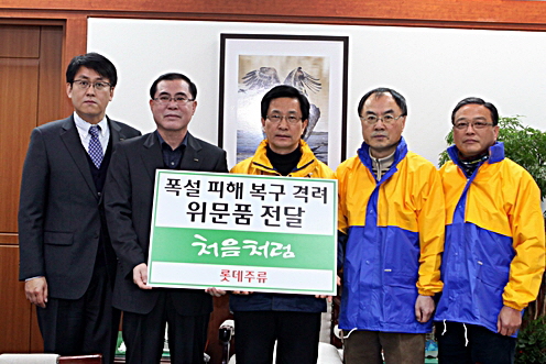 롯데주류, 영동 폭설 피해지역에 생수 2만병 지원