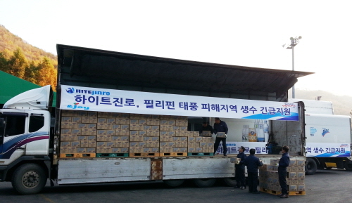하이트진로, 필리핀 태풍피해지역에 먹는샘물 지원