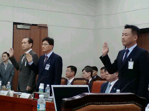 [2013 국감] 허인철 이마트 대표 국감 출석해 '선서'