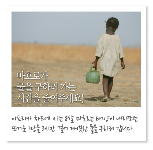 "모이스춰 써지로 아프리카 아동에 우물을 선물하세요"