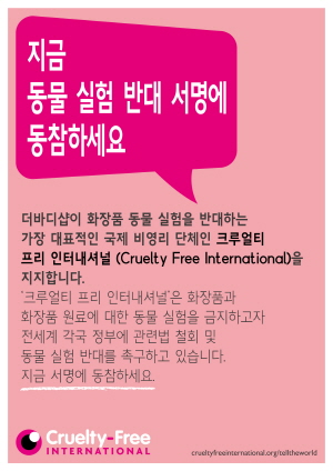 더바디샵 "전세계 동물실험을 반대합니다"