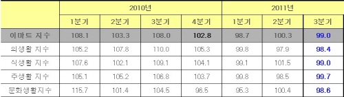 3분기 소비심리 위축…이마트 지수 99 기록