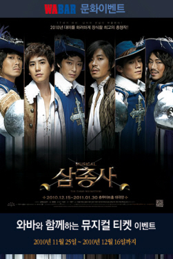 와바,"10분께 뮤지컬 ‘삼총사’ 티켓 드려요"