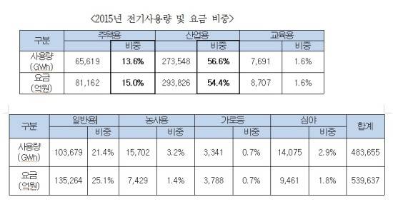주택용 전기요금, 사용량비중<요금비중…산업용 정반대