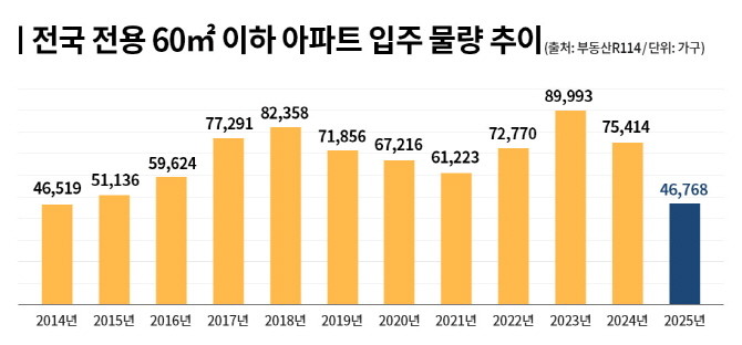 60㎡ 이하 소형 타입, 11년 만의 최저 "수급 불균형 우려"