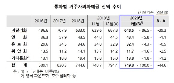 거주자외화예금 '기업 달러화예금 축소' 감소세