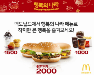 맥도날드, 최대 2000원 '행복의 나라 메뉴' 출시