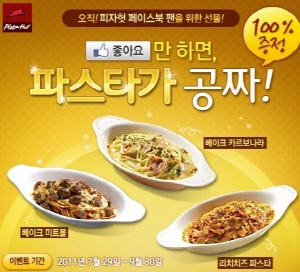 피자헛 “페이스북 팬에게 파스타 쏩니다”