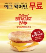 맥도날드 "17일 전국 매장서 '에그 맥머핀' 공짜로"