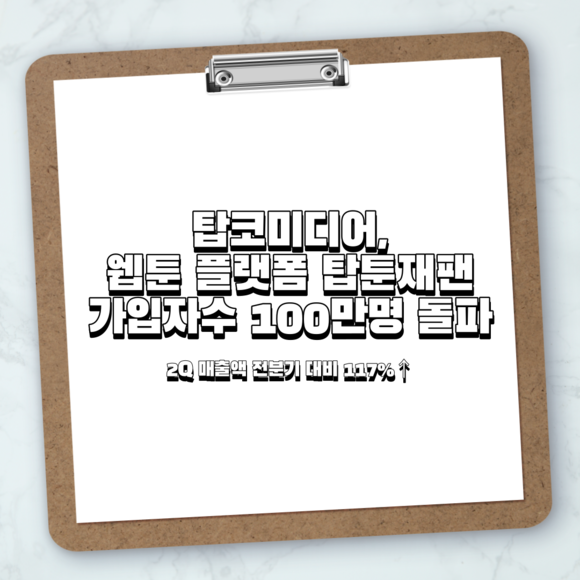 [카드] 탑코미디어, 웹툰 플랫폼 탑툰재팬 가입자수 100만명 돌파
