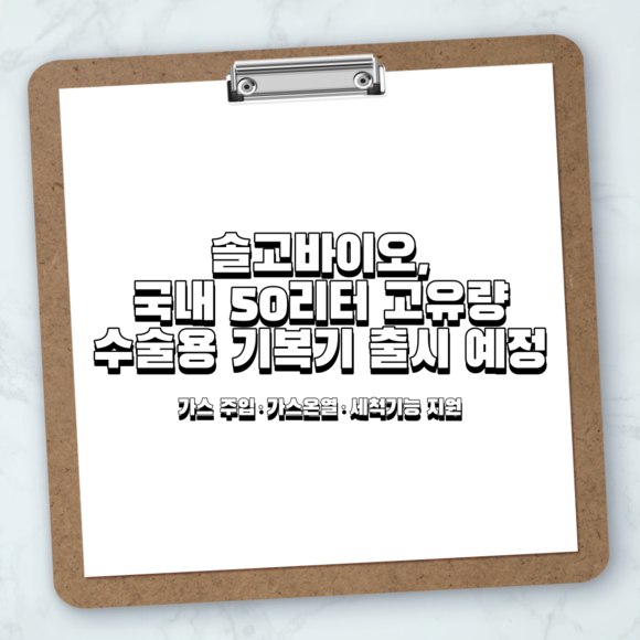 [카드] 솔고바이오, 자회사 솔렌도스 50리터 고유량 수술용 기복기 출시 예정