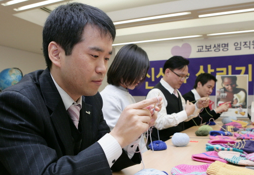 교보생명 임직원, '신생아 살리기 모자 뜨기' 동참