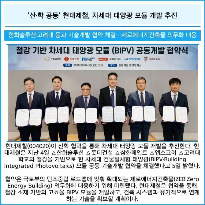 [카드] '산·학 공동' 현대제철, 차세대 태양광 모듈 개발 추진