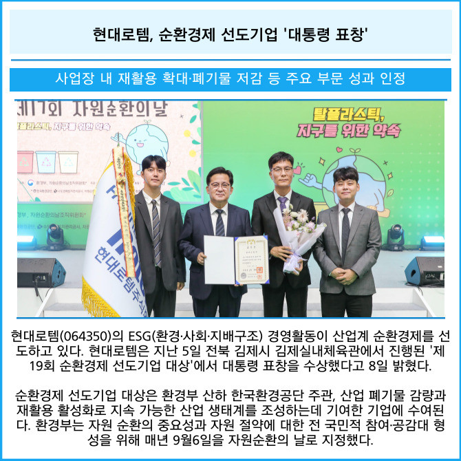 [카드] 현대로템, 순환경제 선도기업 '대통령 표창'
