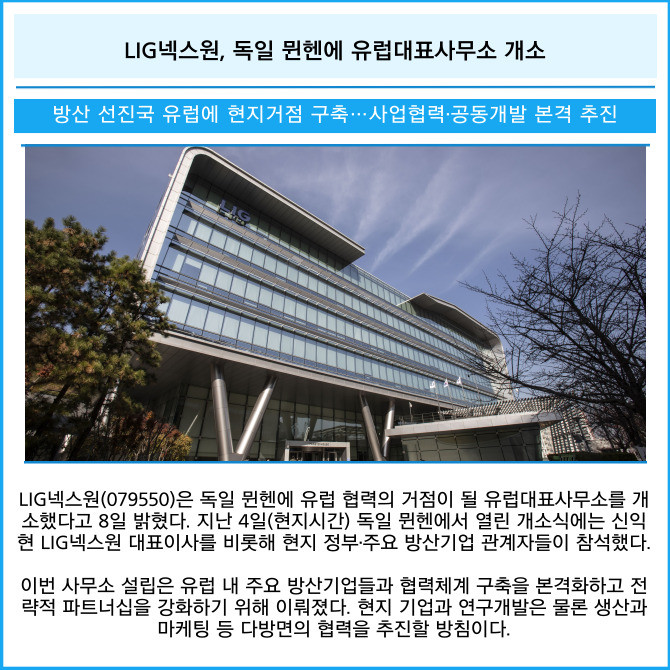 [카드] LIG넥스원, 독일 뮌헨에 유럽대표사무소 개소