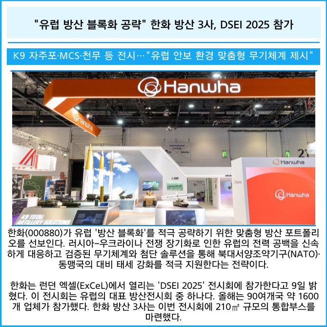 [카드] "유럽 방산 블록화 공략" 한화 방산 3사, DSEI 2025 참가