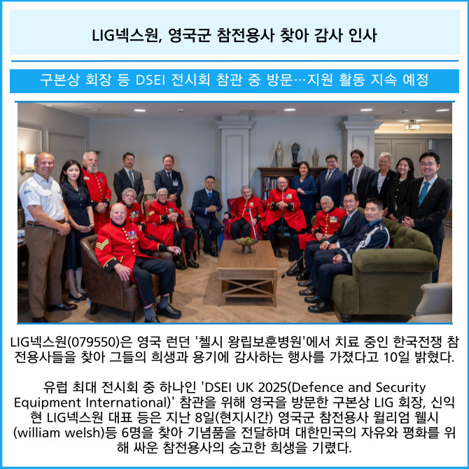 [카드] LIG넥스원, 영국군 참전용사 찾아 감사 인사
