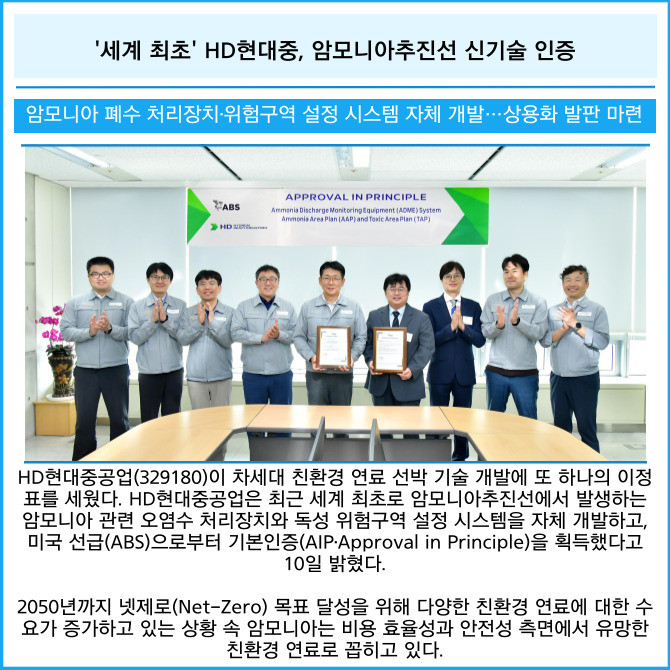 [카드] '세계 최초' HD현대중, 암모니아추진선 신기술 인증