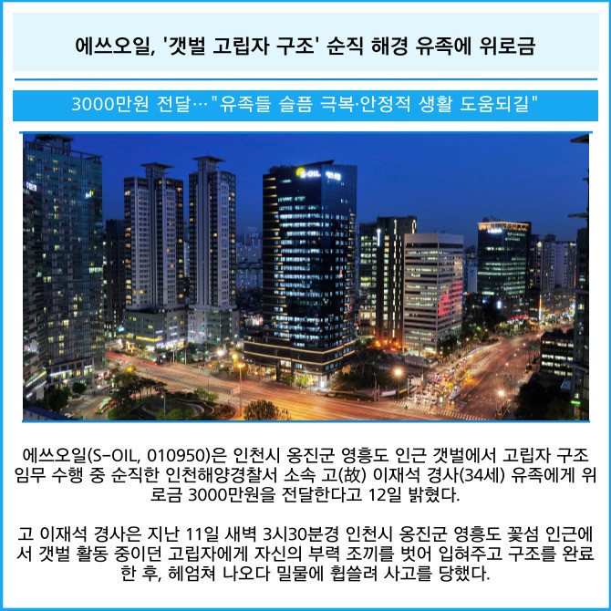 [카드] 에쓰오일, '갯벌 고립자 구조' 순직 해경 유족에 위로금