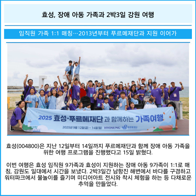 [카드] 효성, 장애 아동 가족과 2박3일 강원 여행
