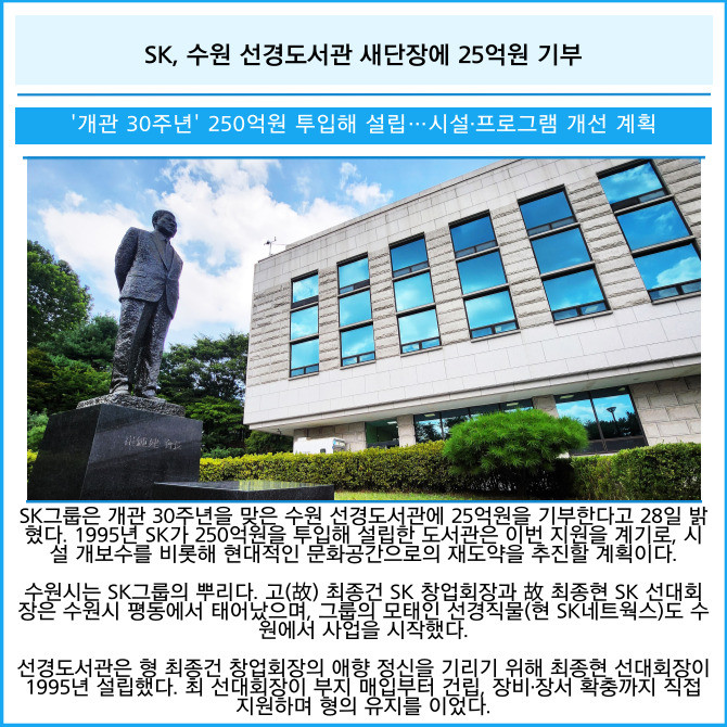 [카드] SK, 수원 선경도서관 새단장에 25억원 기부