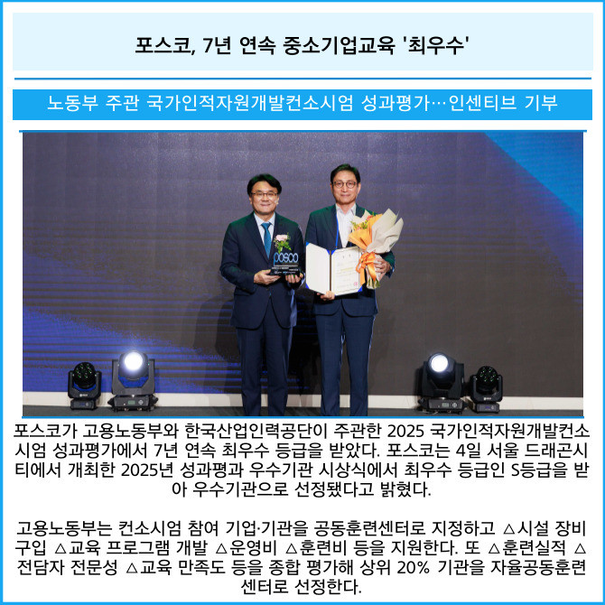 [카드] 포스코, 7년 연속 중소기업교육 '최우수'