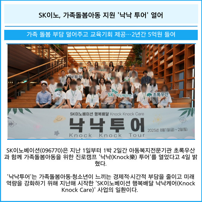 [카드] SK이노, 가족돌봄아동 지원 '낙낙 투어' 열어