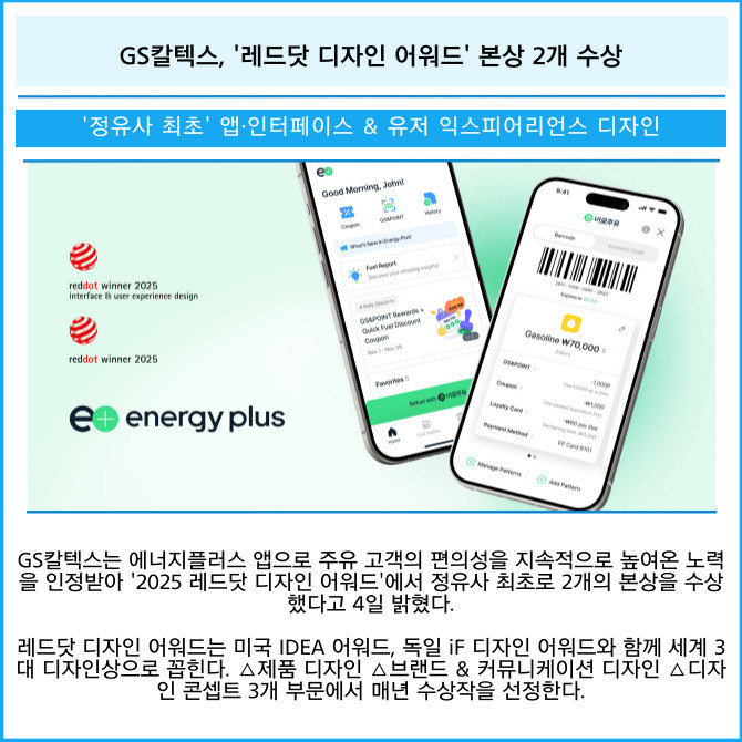 [카드] GS칼텍스, '레드닷 디자인 어워드' 본상 2개 수상