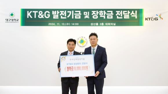 KT&G 대구본부, 대구대에 상상장학금 800만원 전달