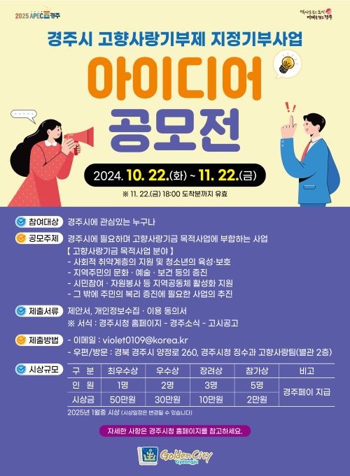 경주시, 고향사랑기부제 지정기부사업 아이디어 공모