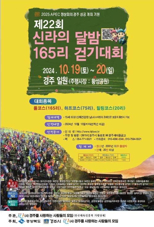 '가을달밤 정취 만끽' 경주시, 제22회 신라의 달밤 165리 걷기대회 개최