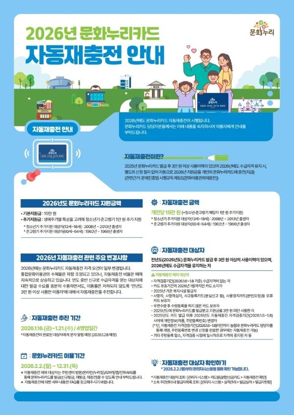 [고령군 소식] 문화누리카드 지원 확대···자동 재충전 시행