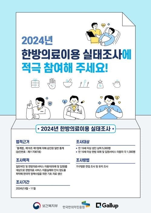 한국한의약진흥원, 2024 한방의료이용 실태조사 실시