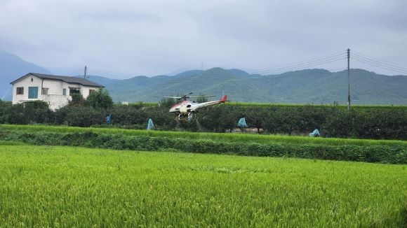 포항시, 벼 병해충 무인 항공방제 실시···방제 효과 높여