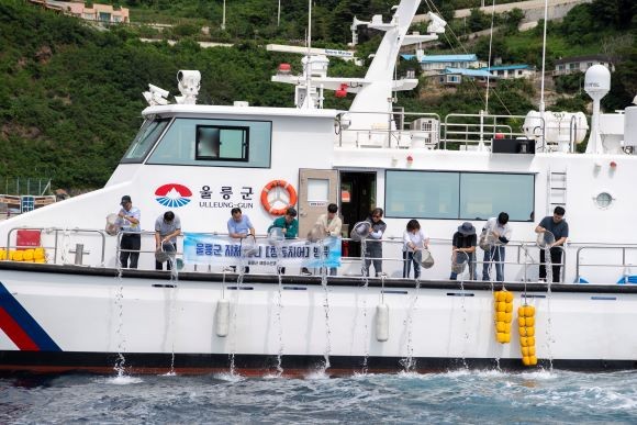 '풍요로운 어장' 울릉군, 직접 키운 참돔 치어 12만마리 방류