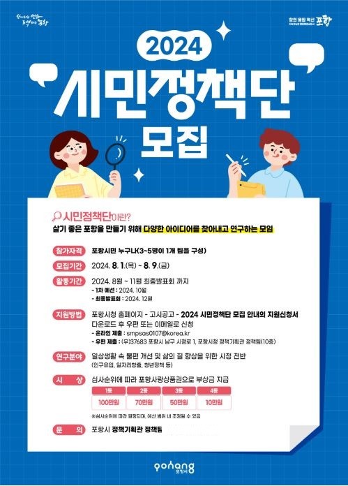 포항시, 2024 시민정책단 모집···살기 좋은 포항 만들기