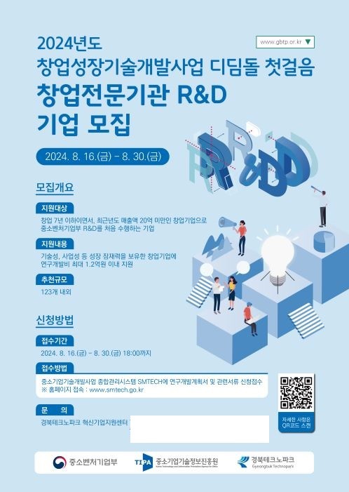 경북테크노파크, 창업전문기관 R&D 추천기업 모집