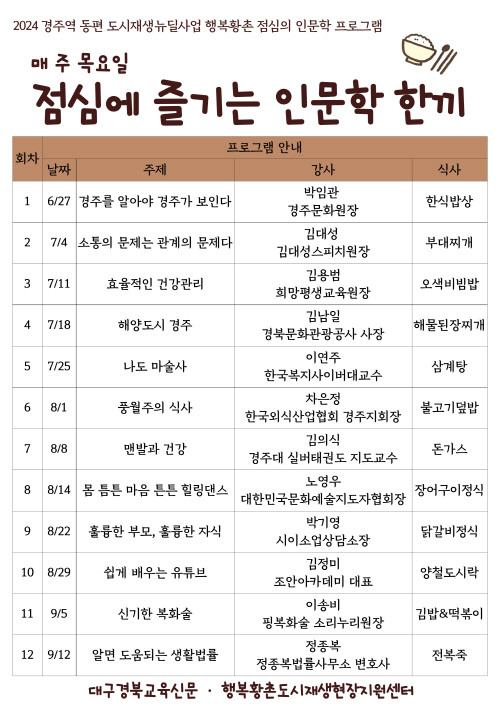 경주시, 점심에 즐기는 인문학 한끼 프로그램 개강