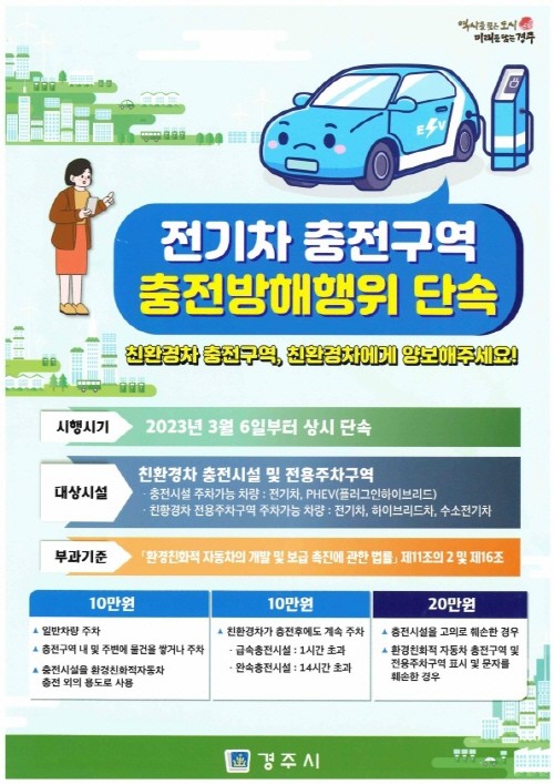 경주시, 전기차 충전구역 내 충전 방해행위 집중단속
