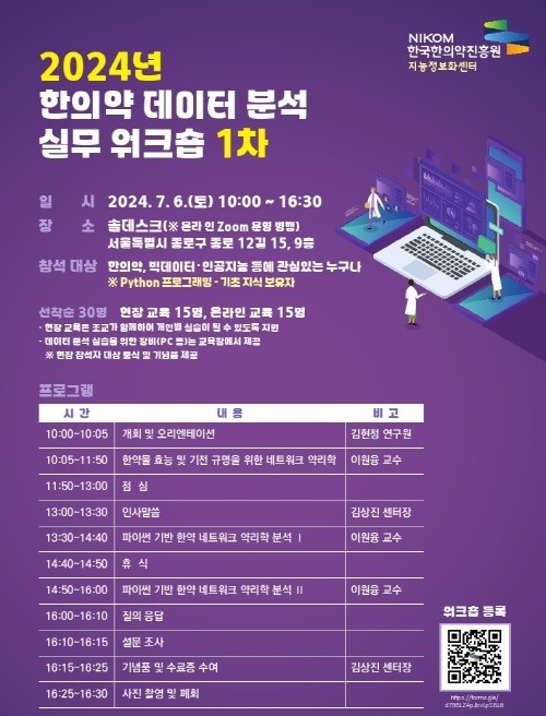 한국한의약진흥원, 한의약 데이터 분석 실무 워크숍 참가자 모집