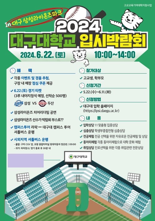 대구대학교, 오는 22일 삼성라이온즈파크서 입시박람회 개최