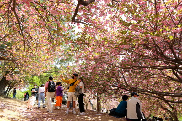 경주 불국사 상춘객들로 '북적'...겹벚꽃 성지