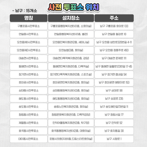 포항시, 국회의원 선거 사전투표소 30개소 운영