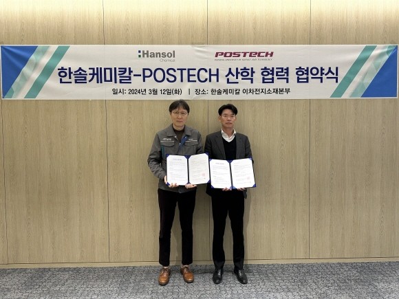 포스텍, 한솔케미칼과 차세대 이차전지 소재 연구 협력 추진