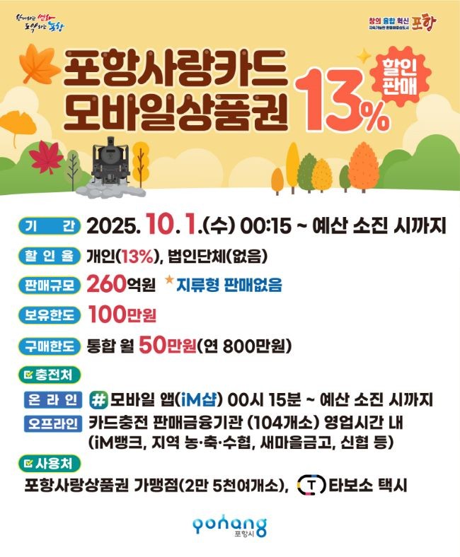 [포항시 소식] 260억원 규모 카드형·모바일 포항사랑상품권 13% 할인 판매