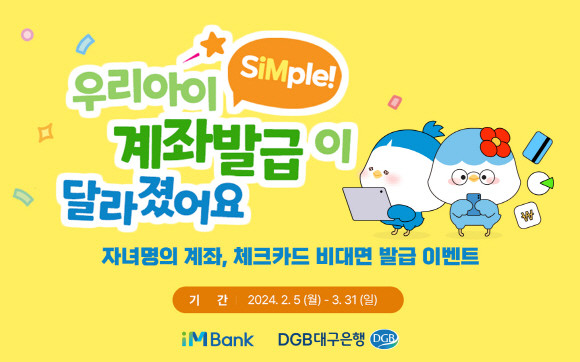 DGB대구은행, 미성년 계좌개설과 체크카드 비대면 발급 이벤트 진행