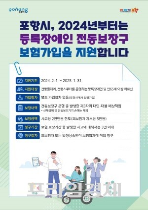 포항시, 올해부터 장애인 전동보장구 보험 가입 지원