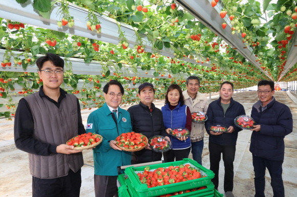 김하수 청도군수, 하이베드 딸기재배농가 방문 "청년농업인 격려"